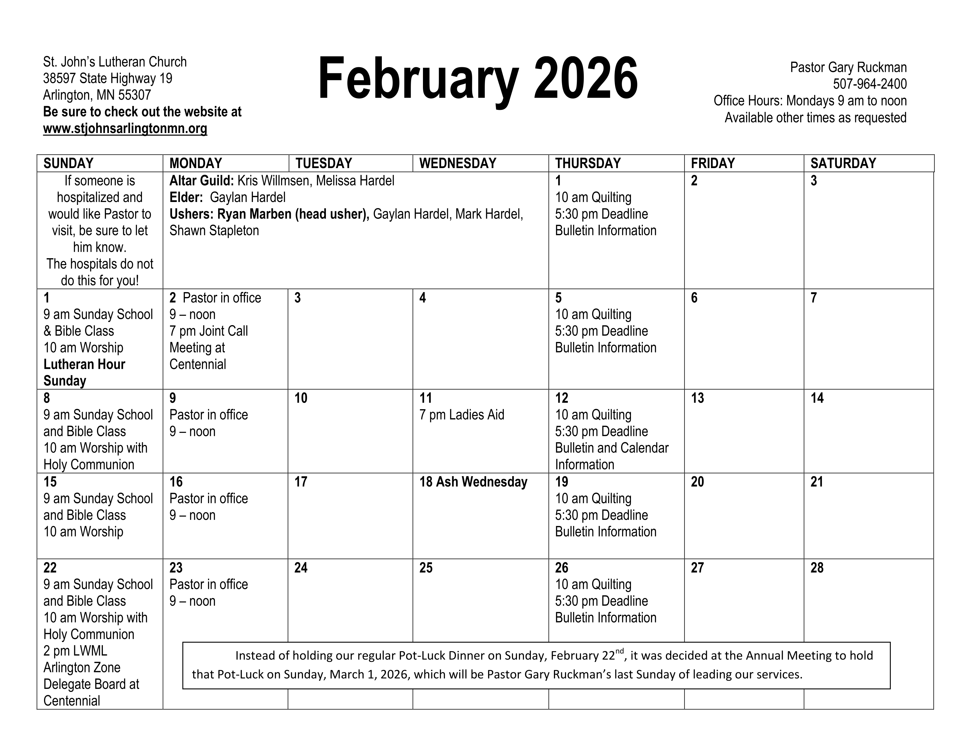 In our secular world, it’s Valentine’s Day. In the church, we commemorate St. Valentine, martyr. Many of our Valentine’s Day customs come from the actions of St. Valentine, including the sharing of notes of love and encouragement. Let us love one another, not just today, but every day, and share the love of Jesus with our neighbors!