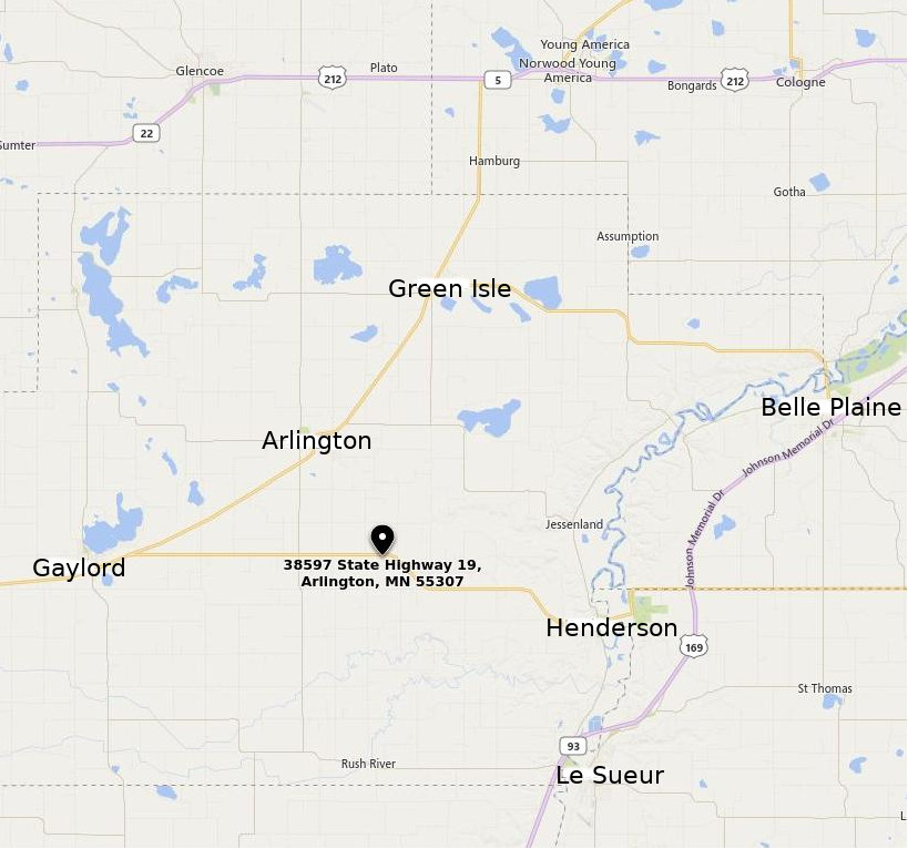 St. John’s is located at 38597 State Highway 19, 7 miles west of Henderson on State Highway 19, or 5 miles south/southeast of Arlington just east of Sibley County Road 17.